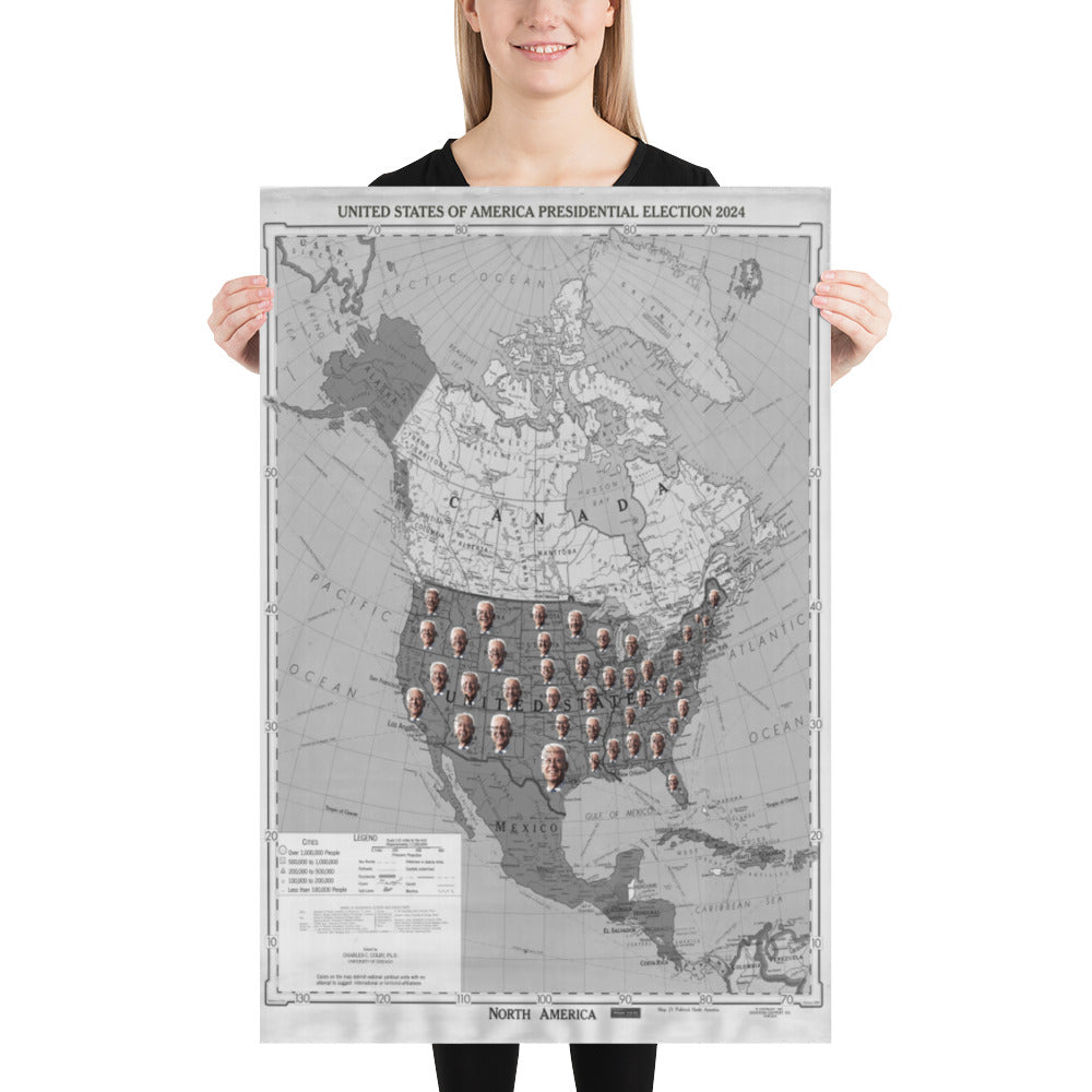 Poster - Biden 2024 President Elect Monochrome Grayscale Map Every State